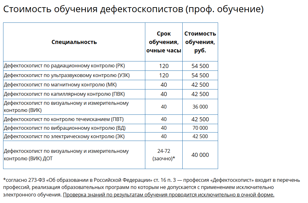 Программы обучения разработаны для каждого направления работы будущих дефектоскопистов. Полученные знания будут хорошим подспорьем в практической работе специалиста. После обучения выдается свидетельство о профессии.